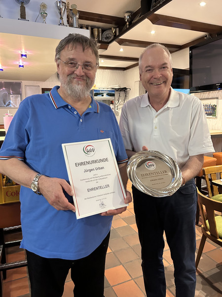 1999 hatte der WVV Jürgen Urban bereits mit der Ehrennadel in BRONZE geehrt, 2005 mit SILBER und 2019 mit GOLD.