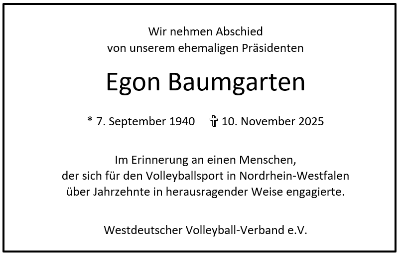 >Der WVV trauert um Egon Baumgarten, der am 10. November 2025 im Alter von 85 Jahren verstorben ist.